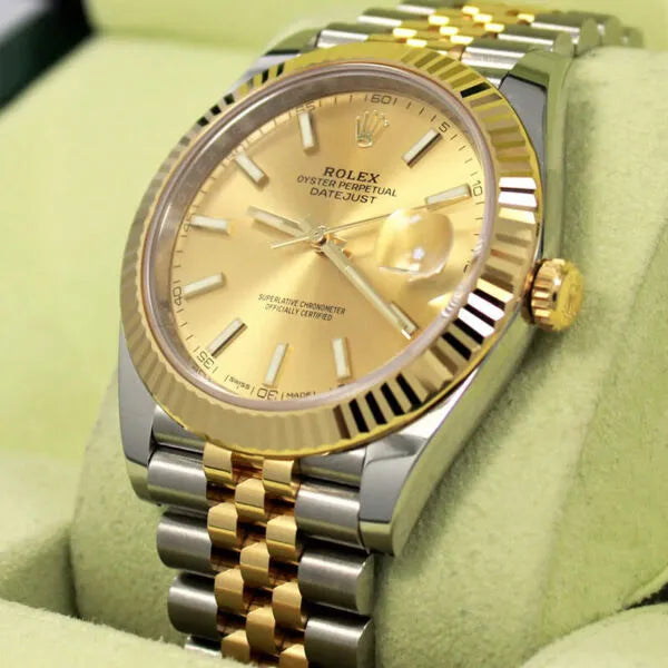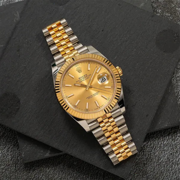 The two-tone composition of this watch combines the allure of stainless steel and yellow gold, creating a harmonious contrast that exudes opulence. The 41mm case size strikes a balance between bold presence and refined proportions, making it an ideal accessory for various occasions.