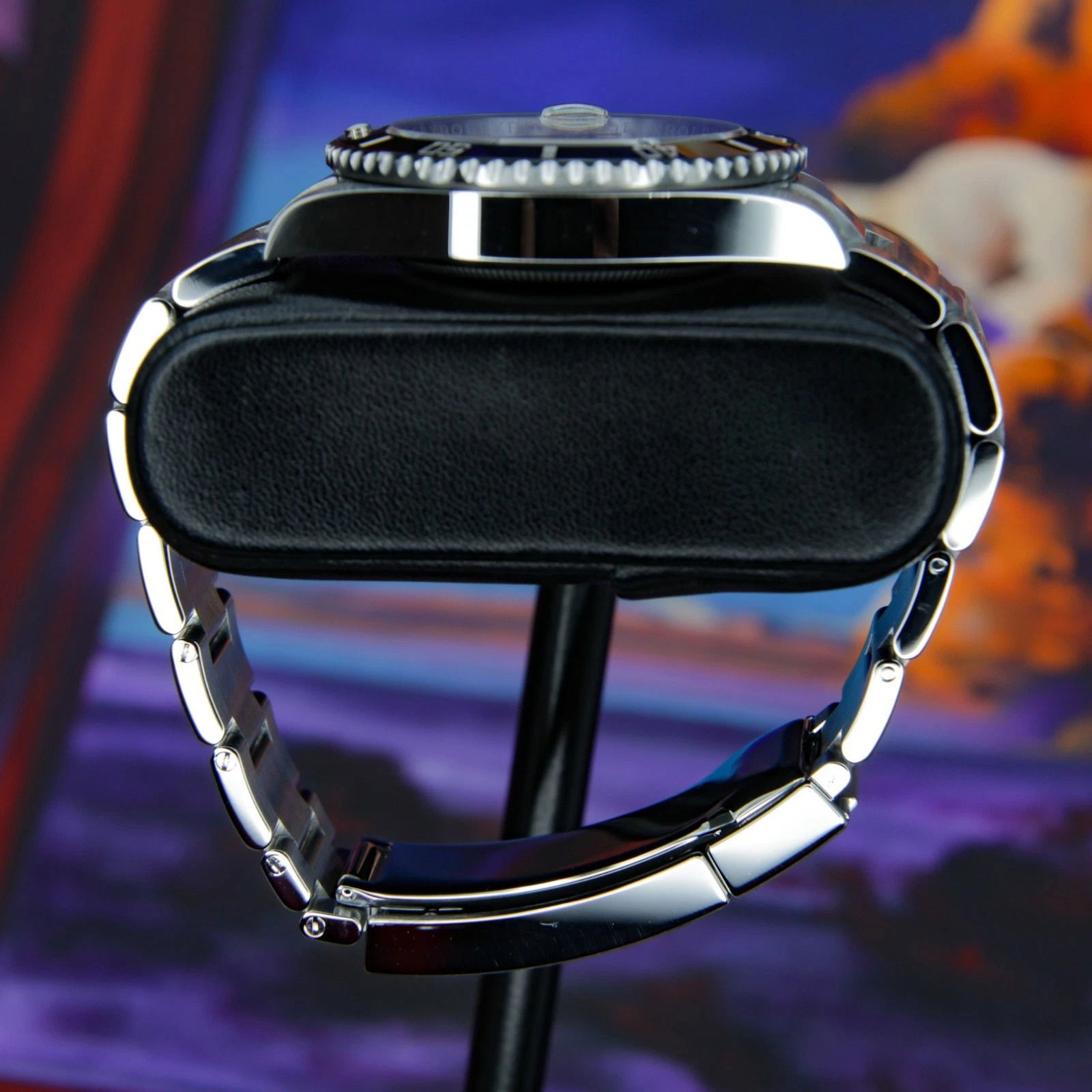 - Black dial with carefully applied hour markers for excellent legibility